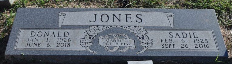 h/o Sadie (Boyd) Jones, Married Oct 18, 1952; s/o James Lester Jones & Mamie