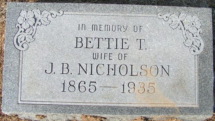 h/o Bettie Tom (Leverett) Nicholson; s/o William John