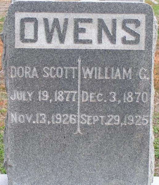 h/o Dora M. (Scott) Owens; s/o William Lemon Owens & Martha Ann (McGallion) Holliday-Owens