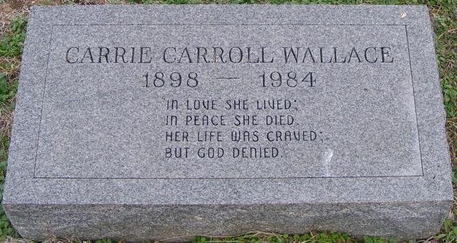w/o James Asberry Wallace; d/o Daniel E. Carroll & Sally