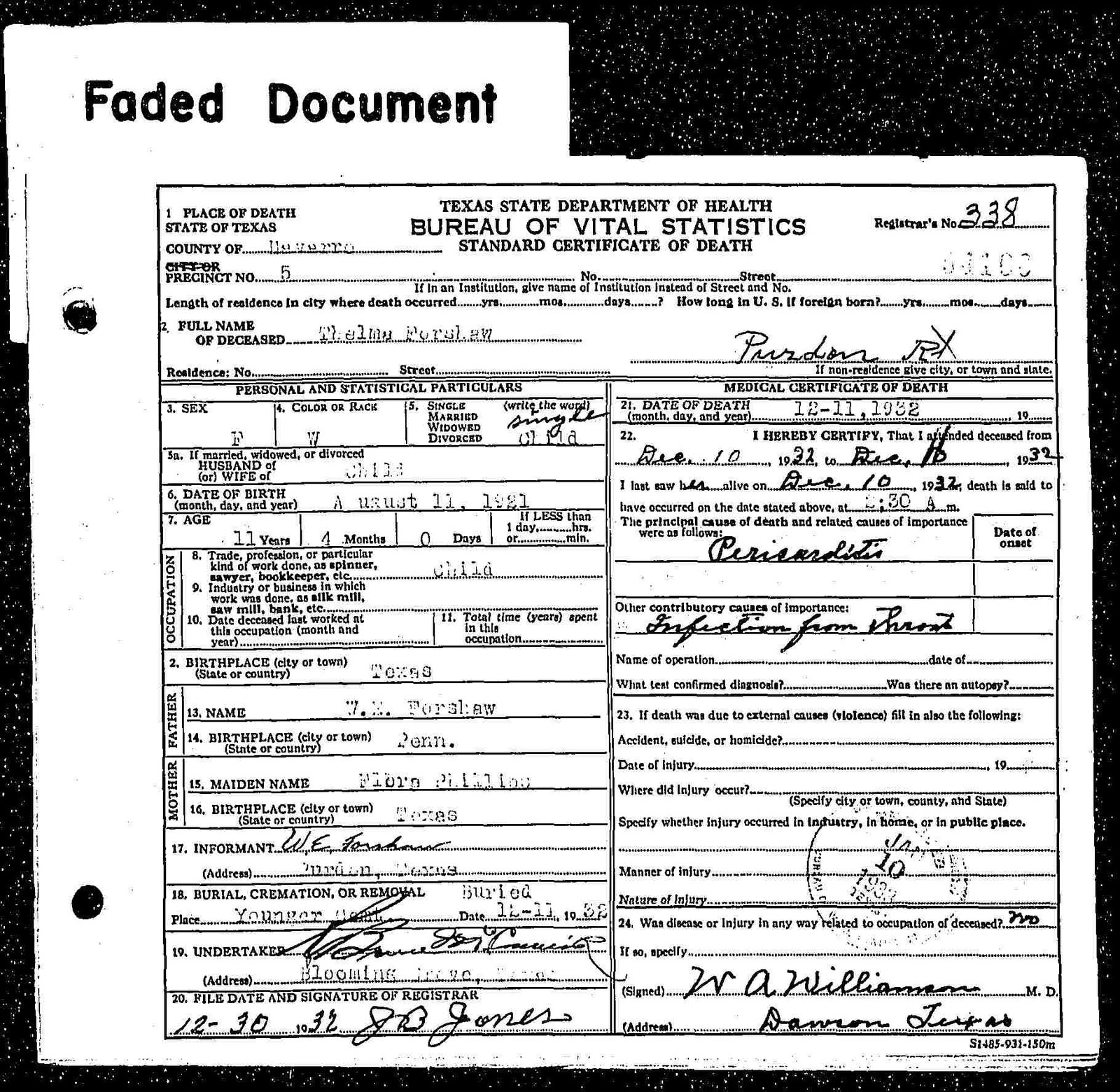 s/o Daniel R. Forshaw & Emma Lou (Long) Forshaw-Peden |