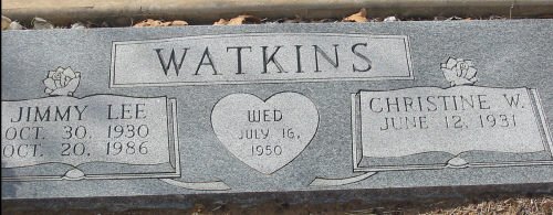 w/o Jimmy Lee Watkins married Jul 16, 1950; d/o Robert Lee