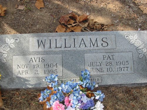 s/o Robert Lee “Pat” Williams and Bonnie Avis