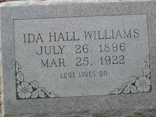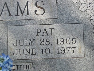 h/o Robert Lee "Pat" Williams; d/o Early Retheage Ellis & Elizabeth Americus (Hubbard) Ellis both buried at