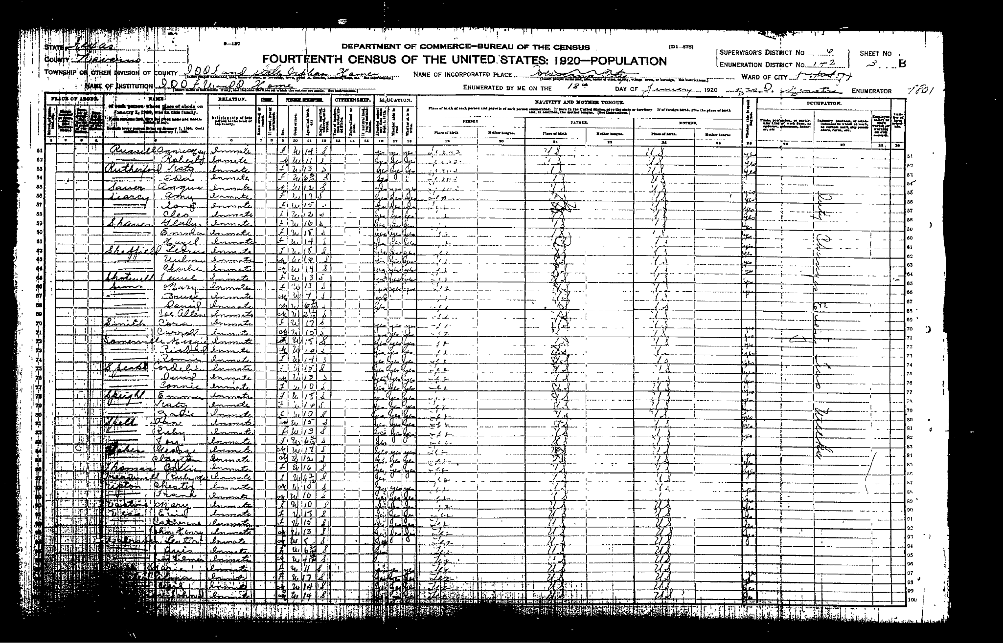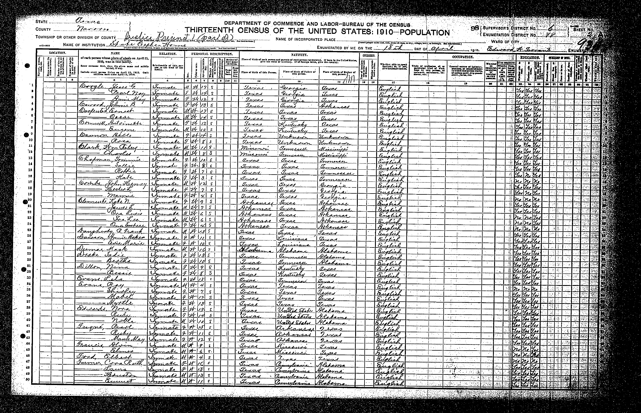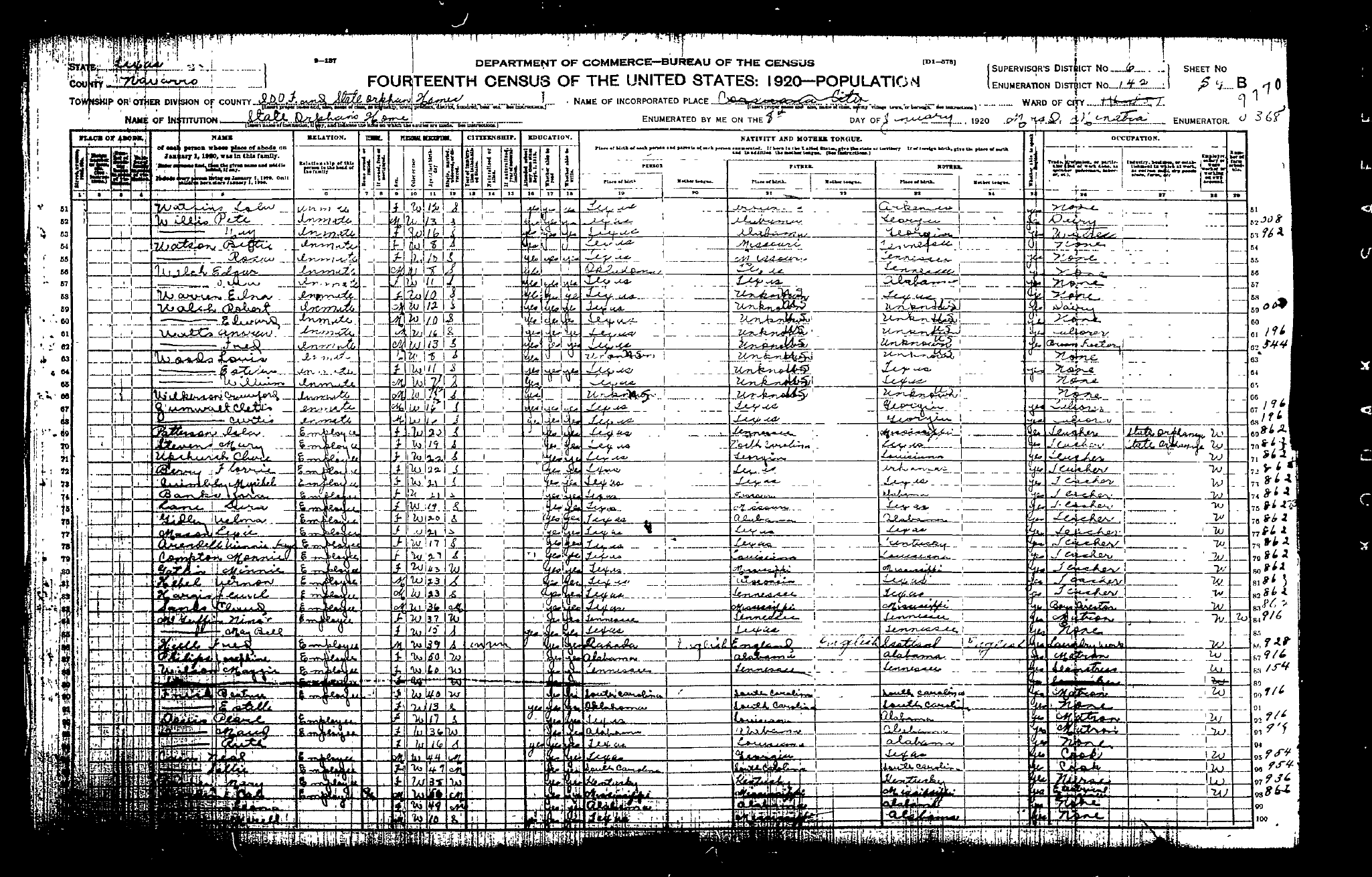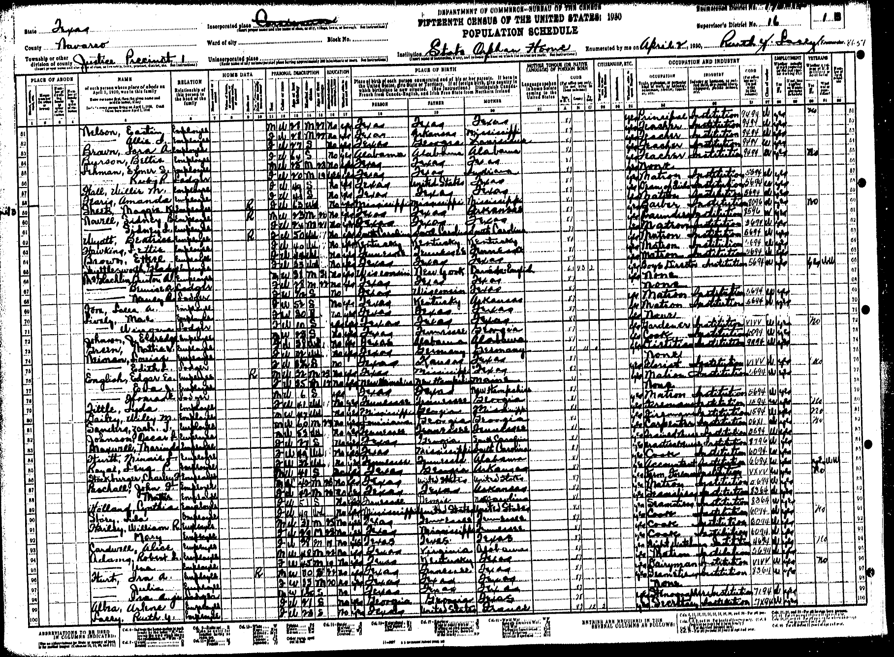 Federal Census of the Corsicana State Home School (1900 - 1930)in Navarro County Texas