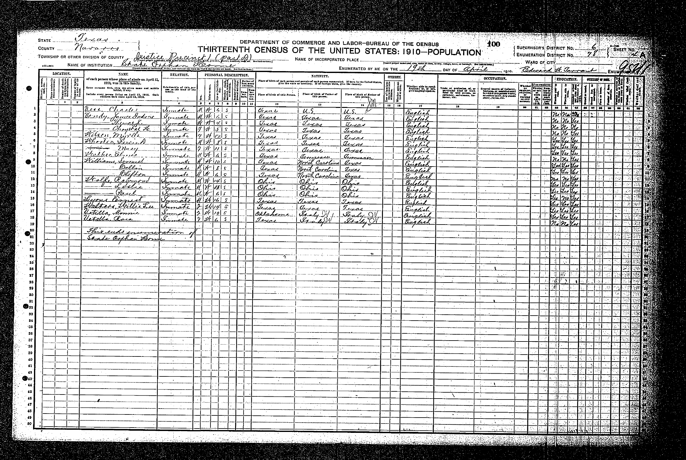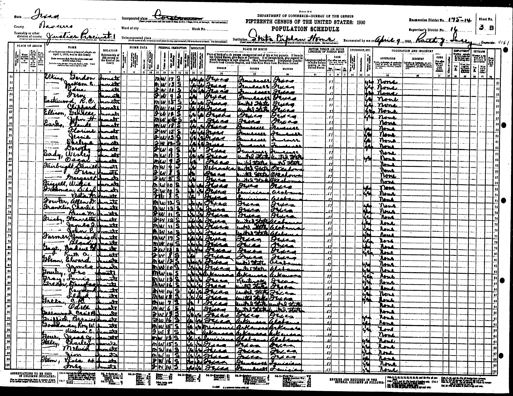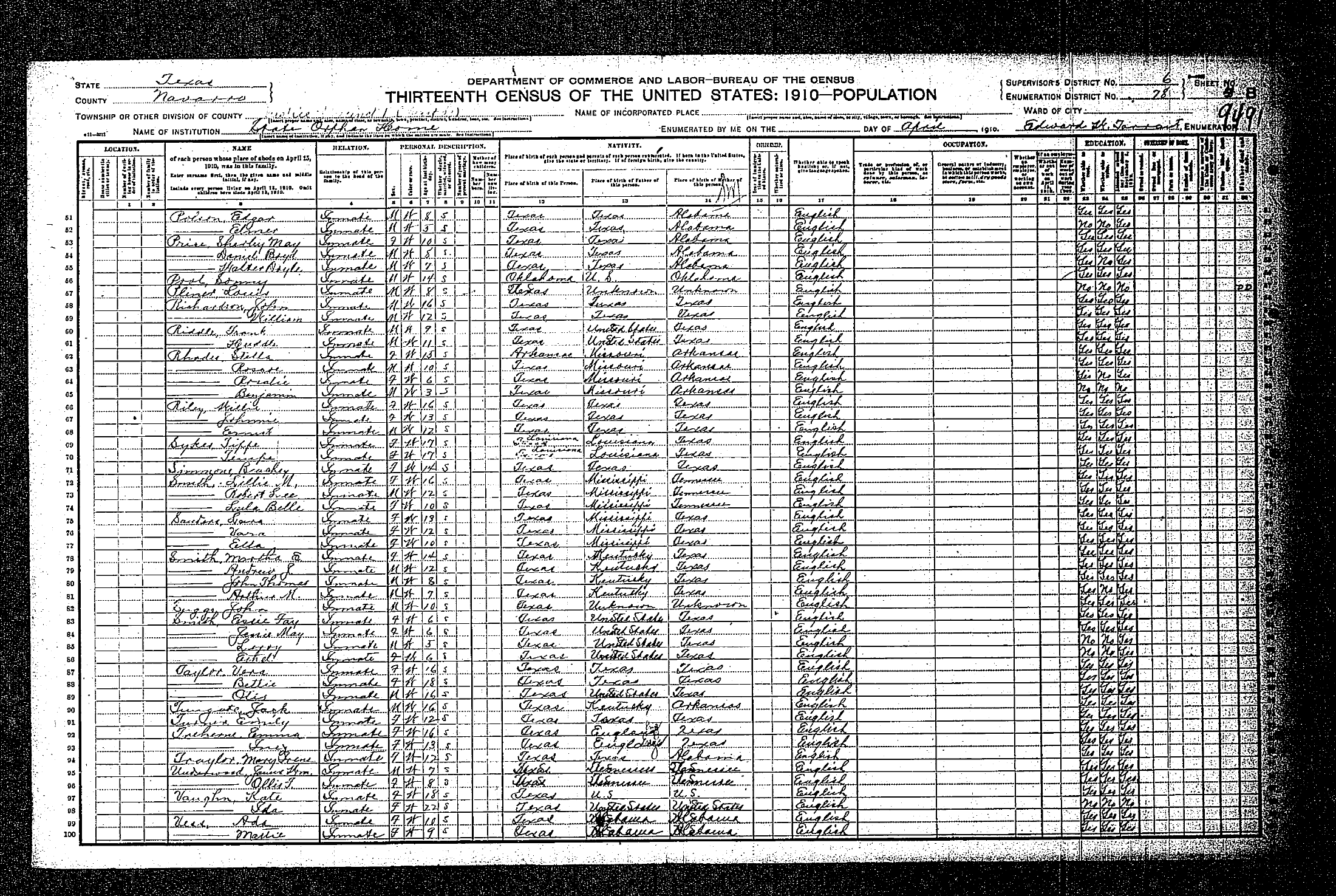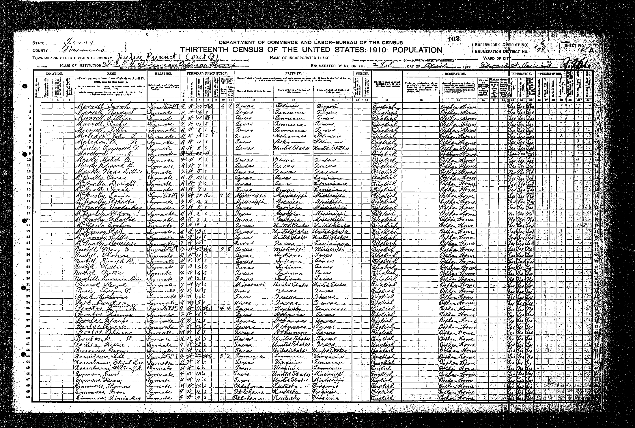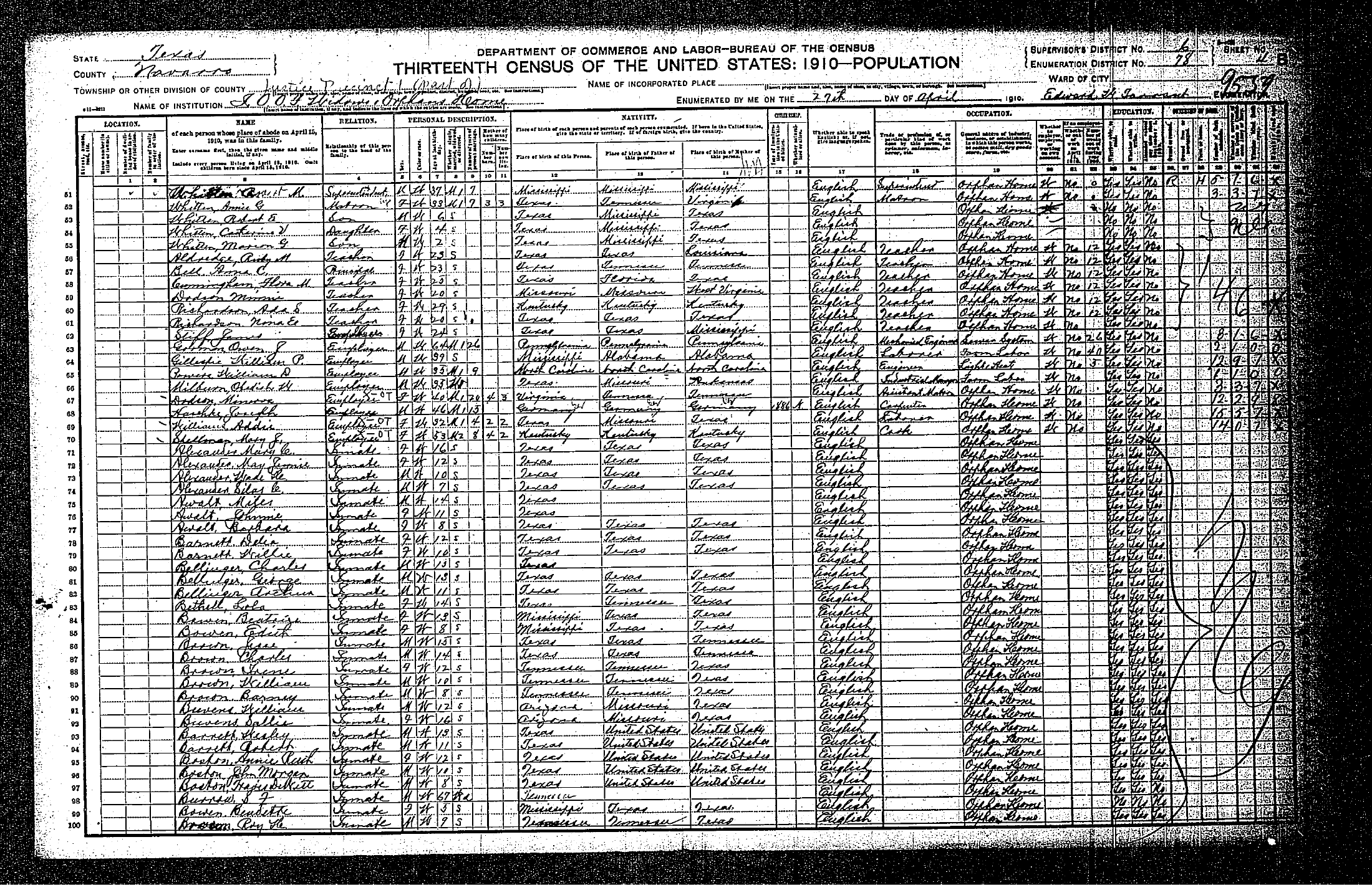 Federal Census of the Corsicana State Home School (1900 - 1930)in Navarro County Texas