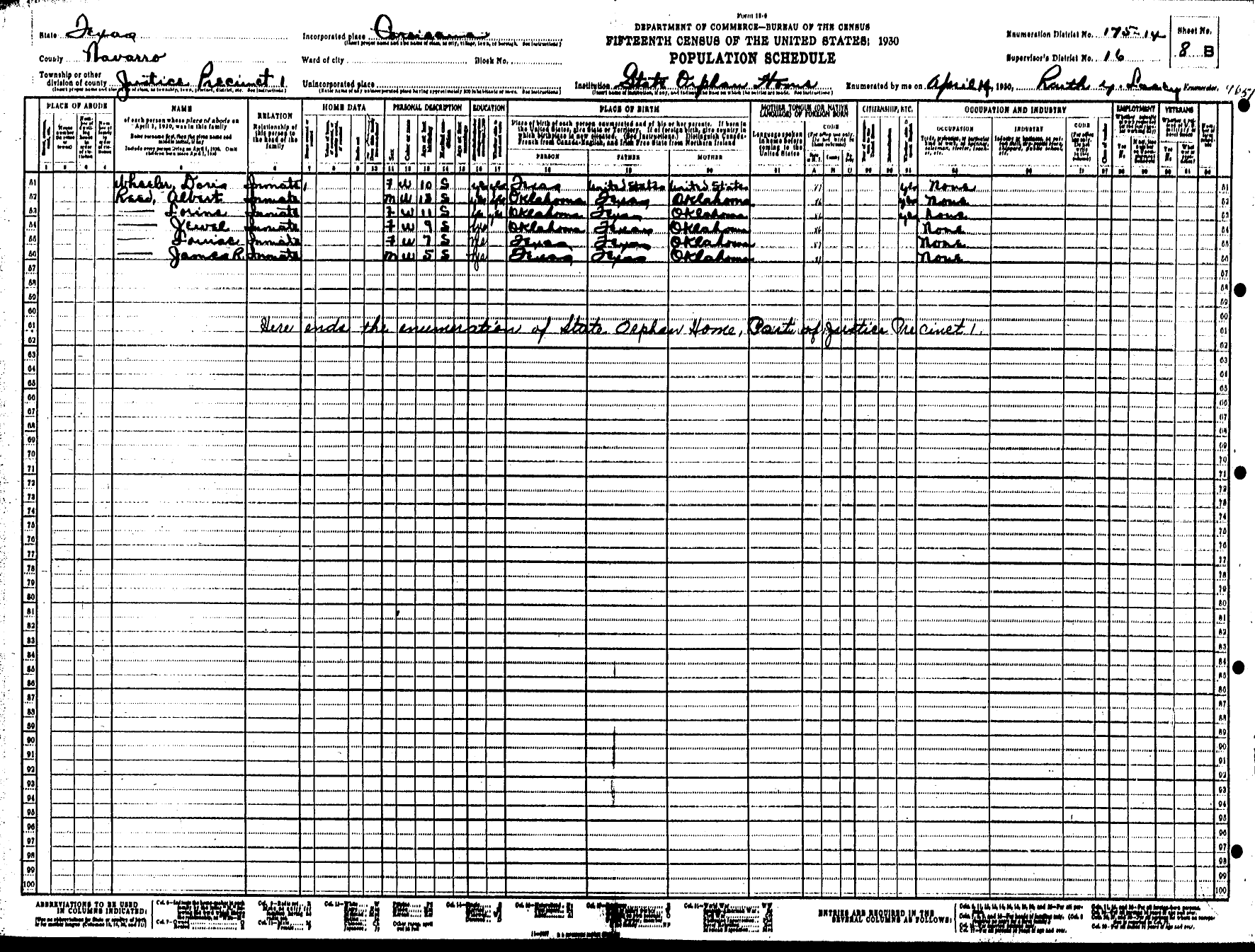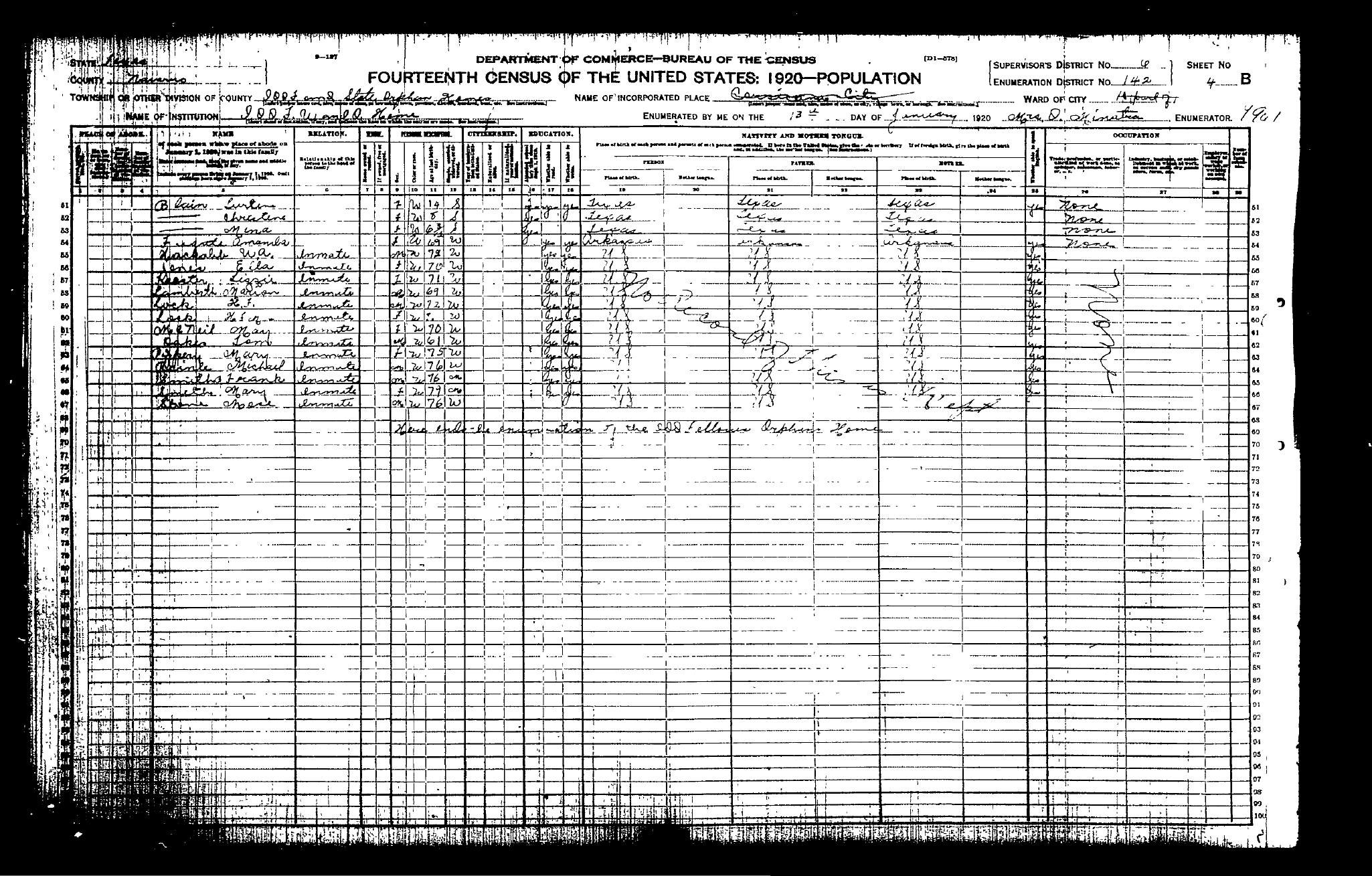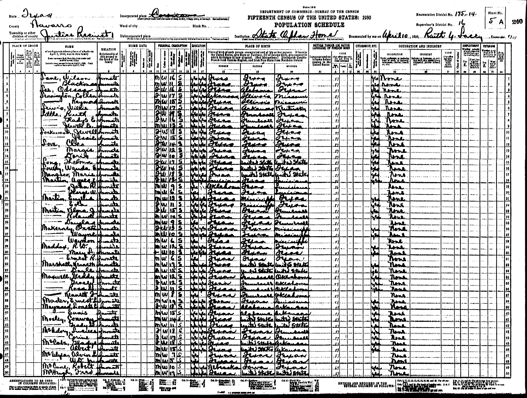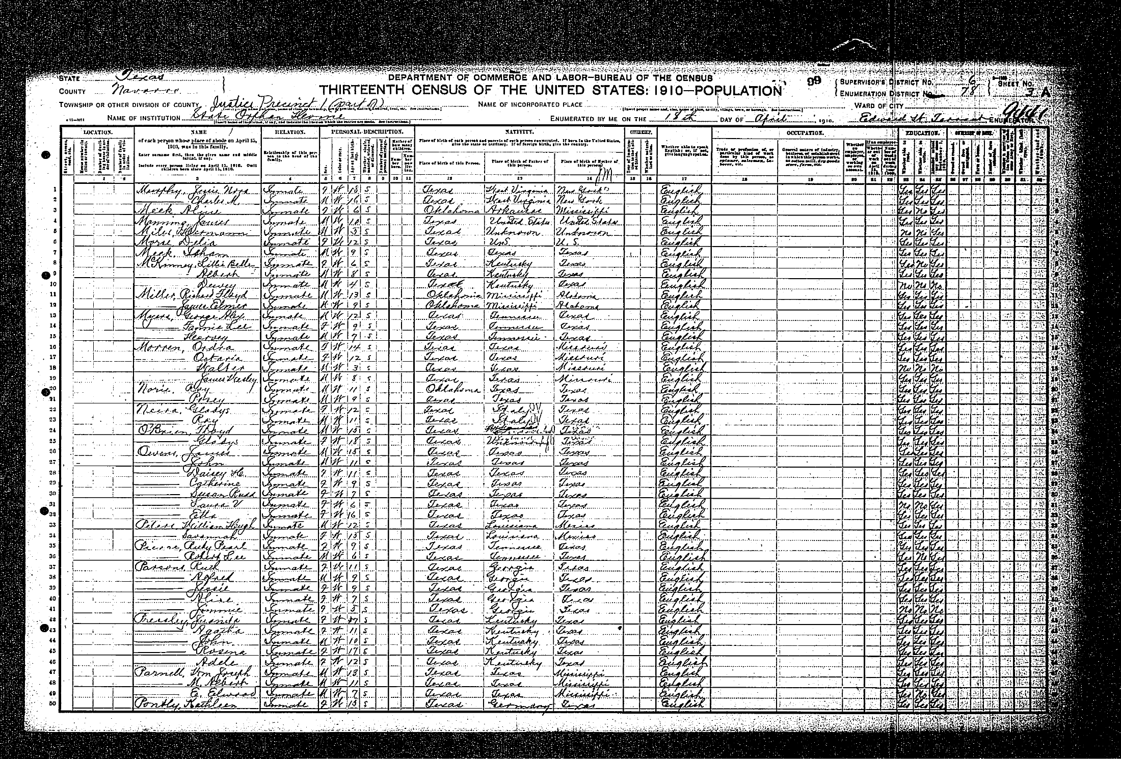 Federal Census of the Corsicana State Home School (1900 - 1930)in Navarro County Texas
