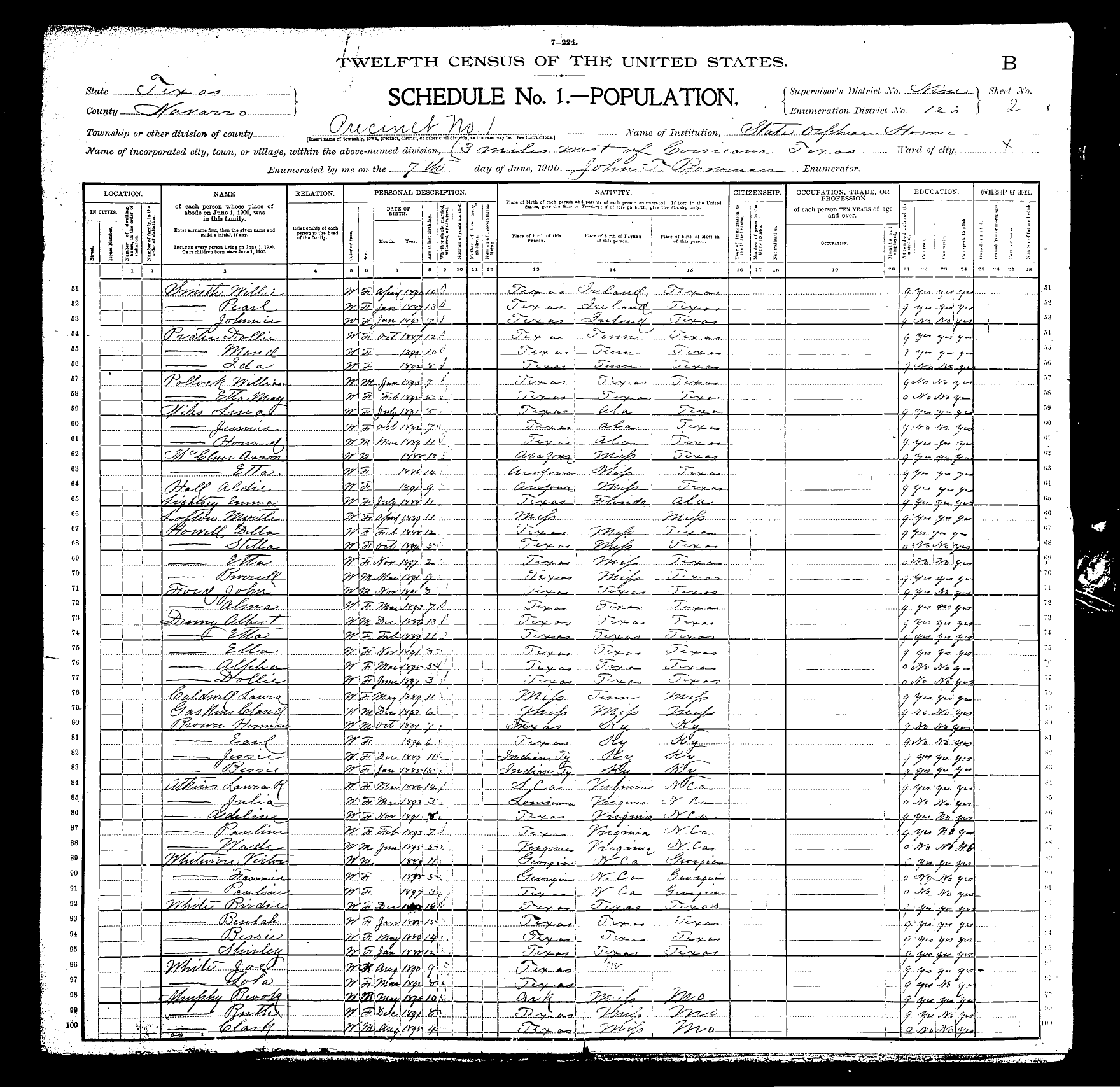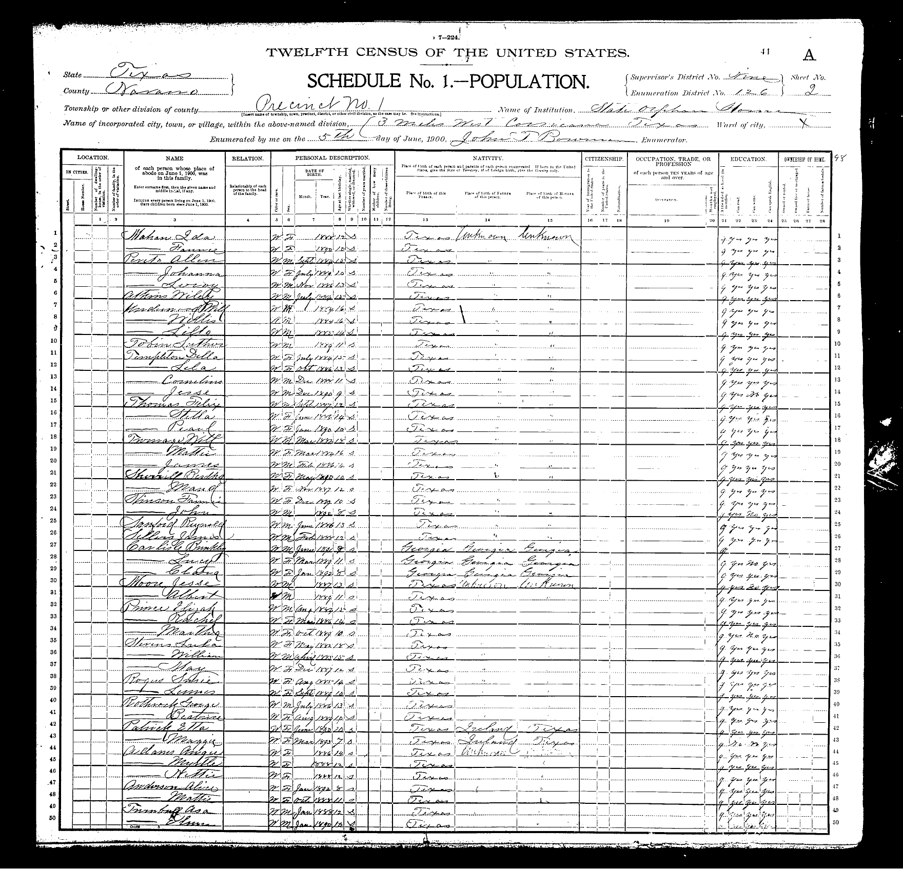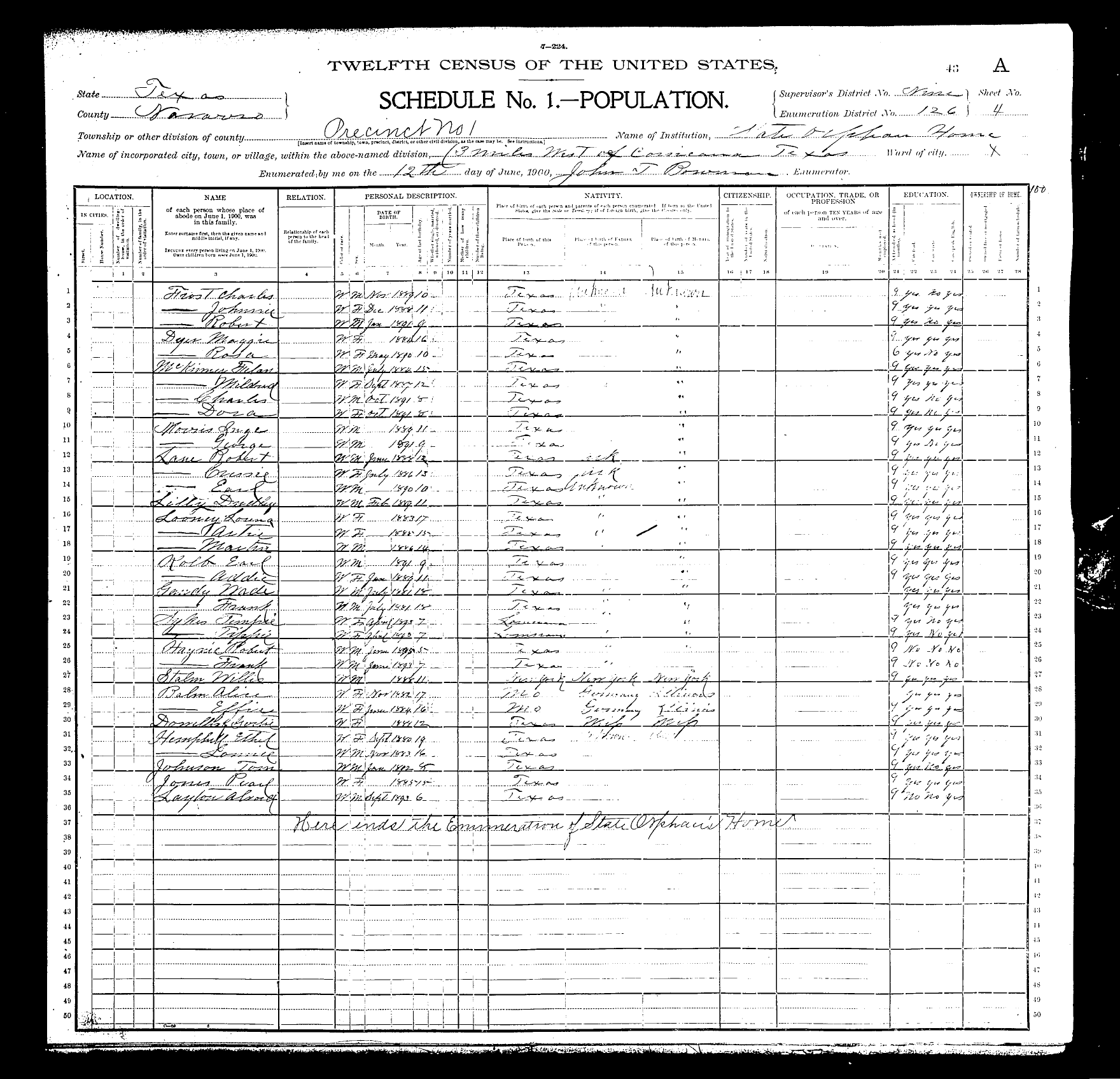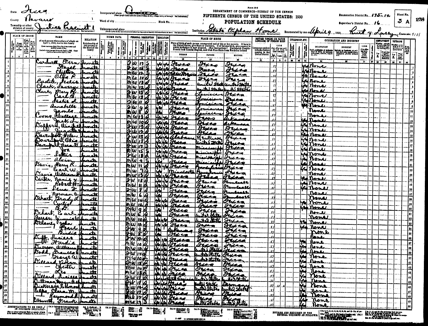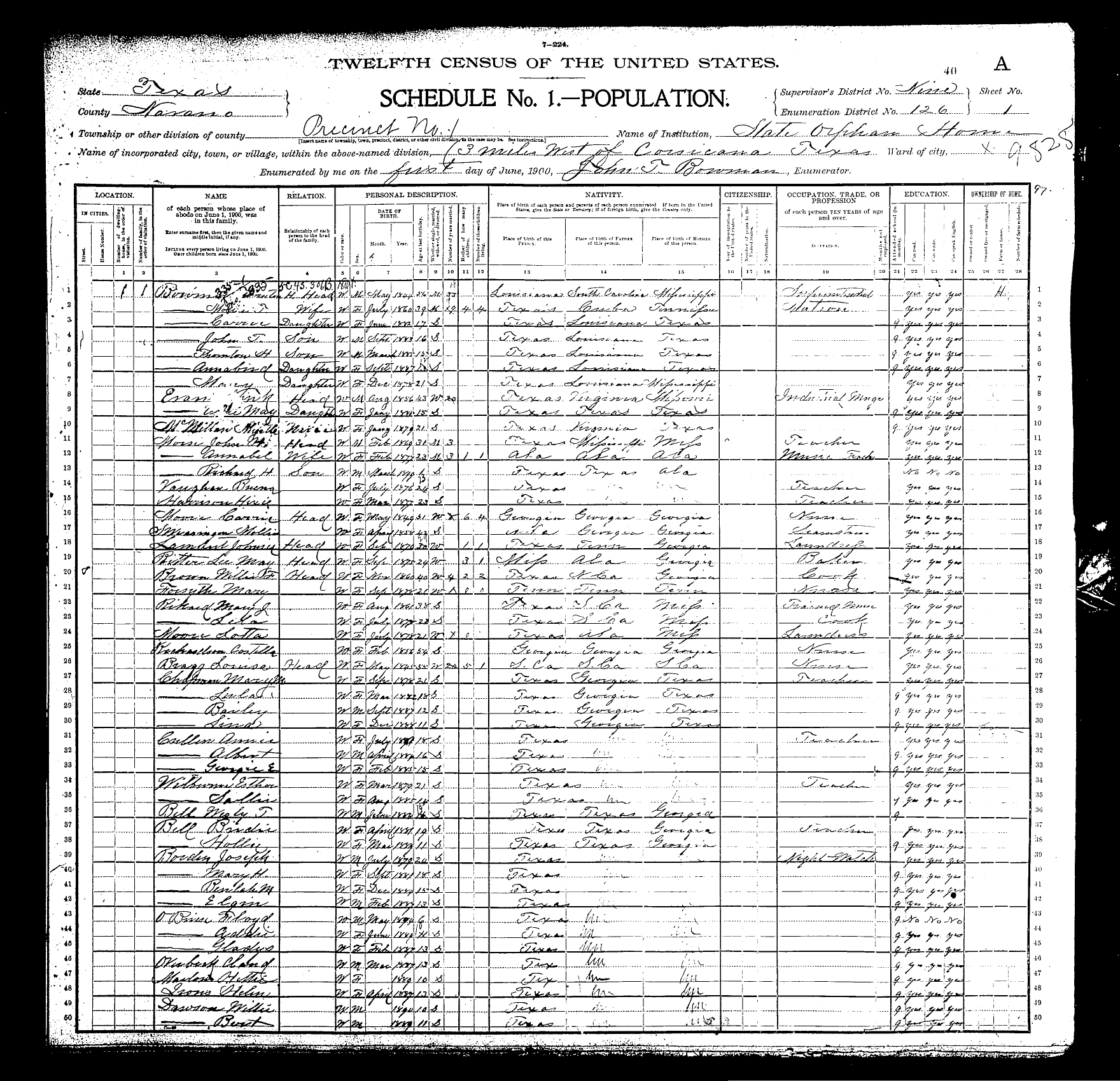 Federal Census of the Corsicana State Home School (1900 - 1930)in Navarro County Texas