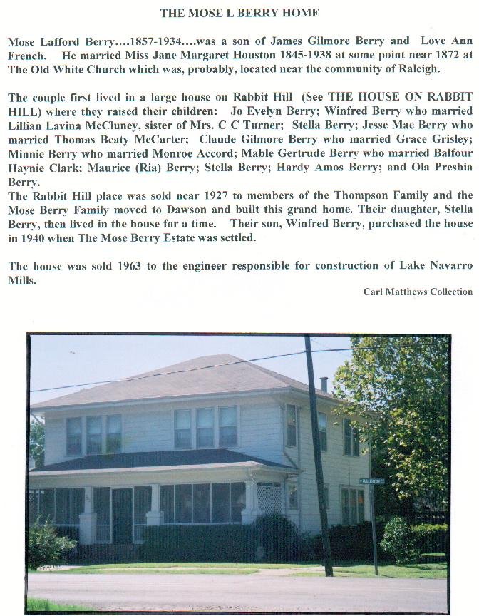 Moses Lafford Berry Dawson, Navarro County, Texas