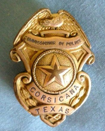 Photo of W. A. Massey, has two old Corsicana Police Badges