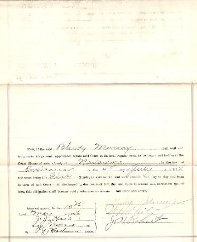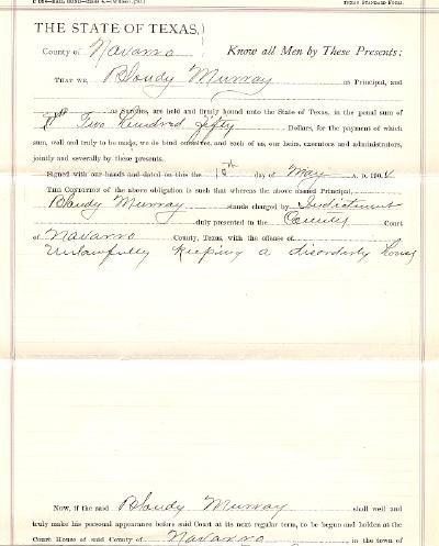 Blondy Murray - Disorderly HouseBail Bond - May 10, 1904Navarro County, Texas