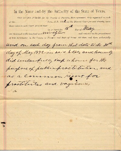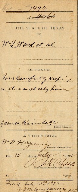 1892 Navarro County True Bill states that W.