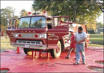 Corsicana Fire Engine No. 11 was put into commission once again Wednesday at Community Park, only this time it will serve as new playground equipment for