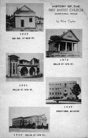 Cover from "History of the First Baptist Church - Corsicana" Corsicana, Texas - 1952 By Alva Taylor
