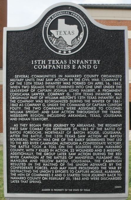 15th Texas Infantry Companies E and G Historical Marker Corsicana, Navarro County, Texas