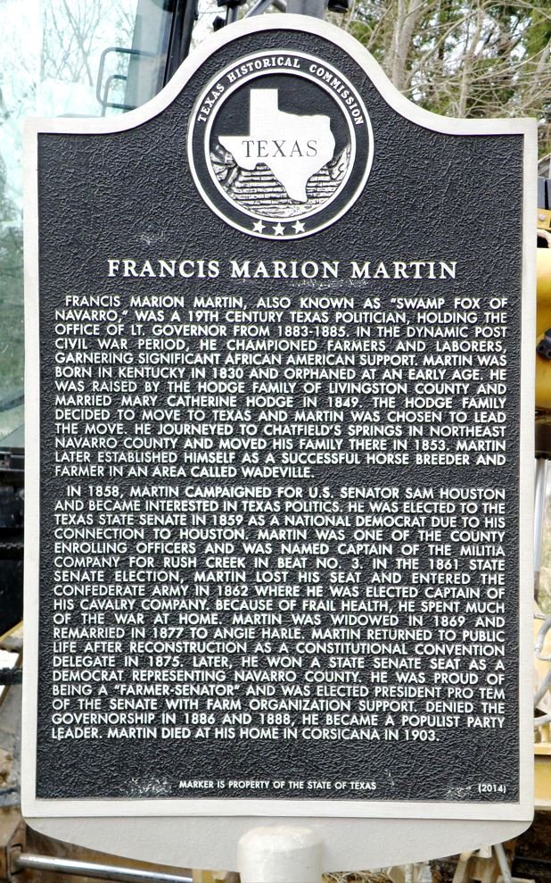 Francis Marion MartinHistorical Marker Winkler, Navarro County, Texas