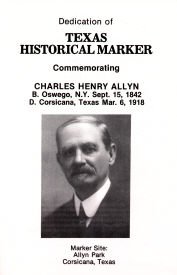 Charles Henry Allyn New York native Charles Henry Allyn (1842-1918) came to Texas in 1868, after having served as a captain in the Union Army during the Civil War. Capt. Allyn arrived in Corsicana with his wife, Angela (Aldrich), in 1871. As a Corsicana