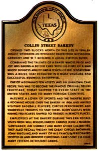 Corsicana - Erected by the Navarro County Historical Society Location: 401 W. 7th St., Corsicana, Texas Collin Street Bakery