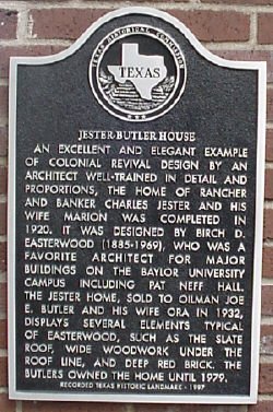 the Jester home, sold to oilman Joe E. Butler and his wife Ora in 1932,