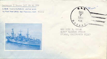 Cover mailed from the USS Navarro
