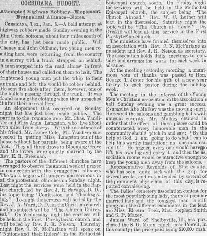 Corsicana BudgetJan, Feb, Mar 1892Navarro County, Texas