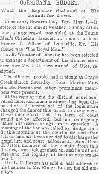Corsicana BudgetApr, May, Jun 1893Navarro County, Texas