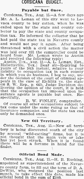 Corsicana BudgetJul, Aug, Sep 1899Navarro County, Texas