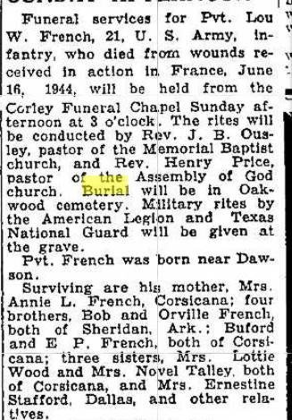 Corsicana for burial.