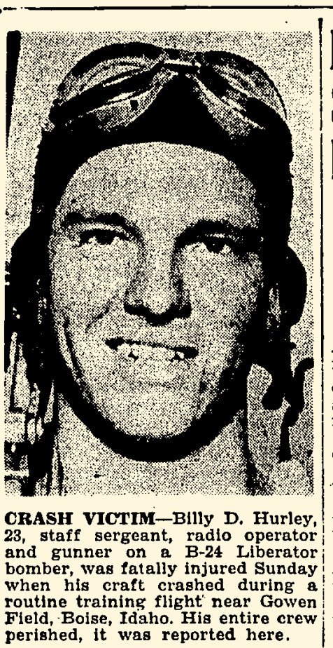 Funeral services for S-Sgt. Billy D. Hurley, age 23 years, who was killed in a crash of an army bomber near Boise,