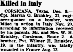 from the war department received by his parents Mr. and Mrs. R. I. Watkins, Corsicana,