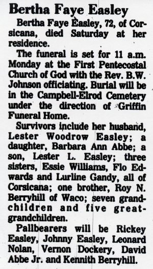 Corsicana passed away Monday, Aug. 27, 2001 in Dallas.
