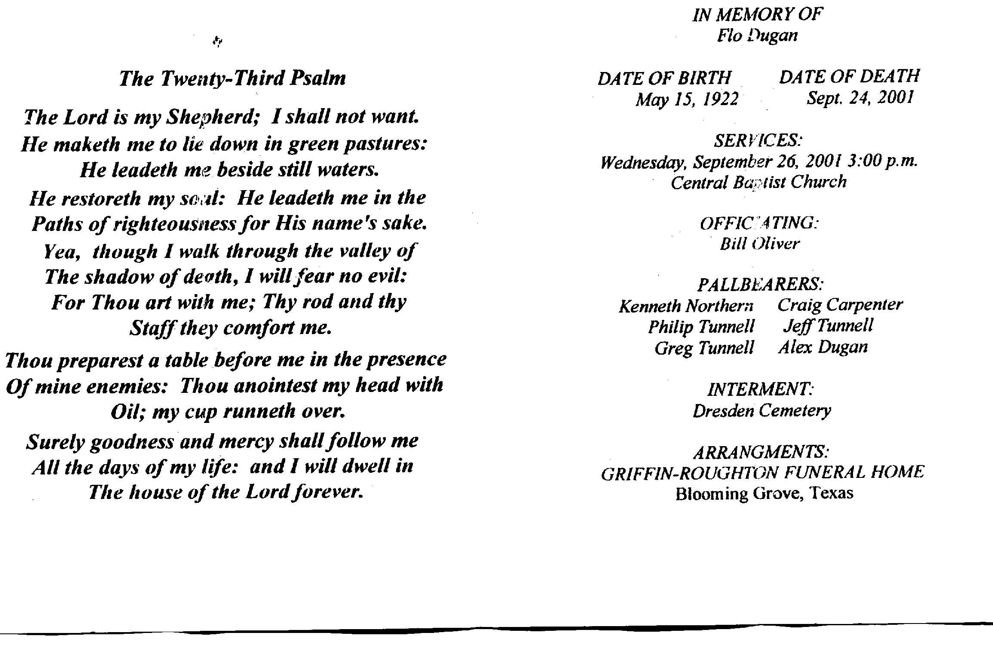 Local arrangements by Griffin-Roughton Funeral Home.
