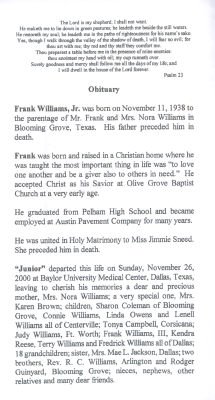Frost Cemetery. Survivors include one son, James C. Young, Jr. of Houston; on sister, Ann Caskey of Mesquite; two grandsons Chris Young of Seabrook and Clay Young of Temple; one great-grand-daugther, Karen Young of Seabrook and one niece, Viola Minns of Beaumont.