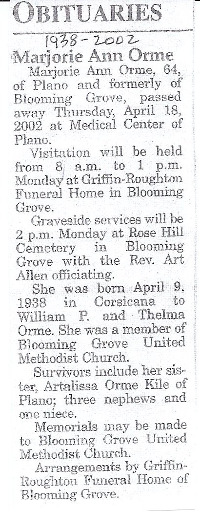Marjorie Ann Orme, 64, of Plano and formerly of