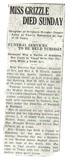 Notes: - Taken from the Groesbeck Journal, Groesbeck, Tx. Nov 1985.