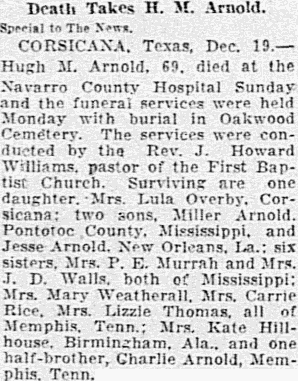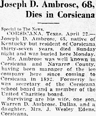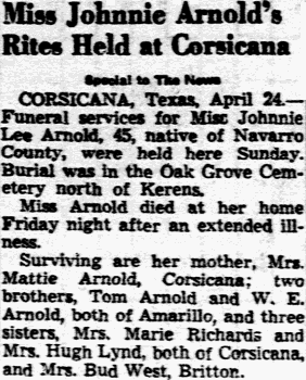 Arrangements by Griffin-Roughton Funeral Home. Notes: - Corsicana Daily Sun - May 12, 2005