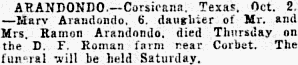Arrangements by Sunset Funeral Home, San Antonio. Notes: -