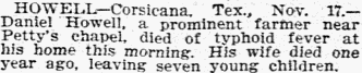 Azle; three daughters, Mrs. A. B. Worsham, Sulphur