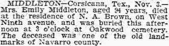 Oakwood Cemetery in Corsicana. Arrangements by Kerrville Funeral Home, Kerrville. Notes: