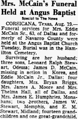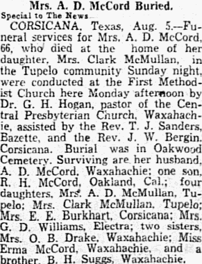 sisters, Mrs. Mary Pool, Ennis; Mrs. Jewel Saunders, Blooming Grove; Mrs.