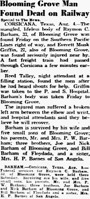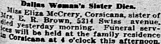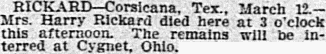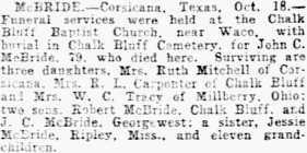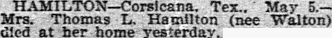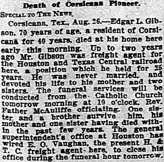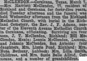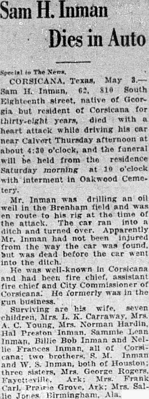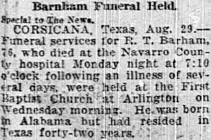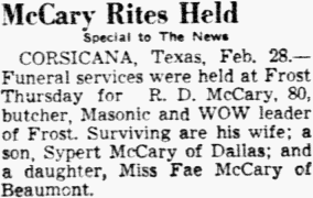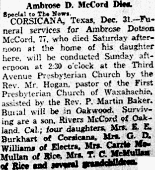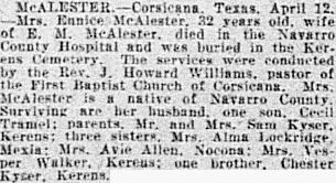 of Corsicana, who died in an Abilene hospital Monday morning at 10:30