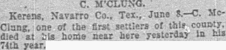 Mrs. Sallie McClure, long-time resident of Frost, died in Memorial hospital