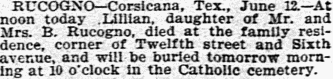 Graveside Services will be Thursday (June 9, 2005) at 1:00 P.M. at Calvary Cemetery in Corsicana, Texas with Deacon Lewis Palos officiating.