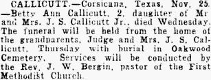 - Corsicana, Texas - Funeral services for J. D. Calhoun, 82, who died