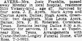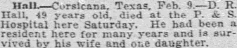 resident of Corsicana for fifty years died at her home, 418 West Third