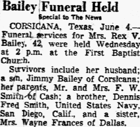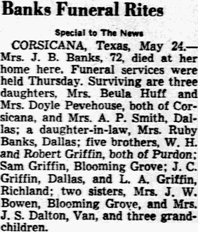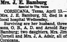 Arrangements by Stephenville Funeral Home, Stephenville. Notes: - Corsicana Daily Sun - Jun 24, 2005