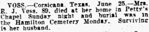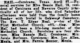 MUCH LOVED PIONEER CORSICANA RESIDENT BURIED IN OAKWOOD