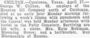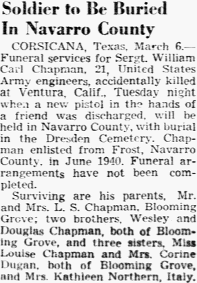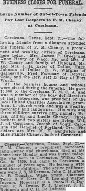 Uriah Chapman, Corsicana; two sisters, Mrs. John Rogers, Streetman and