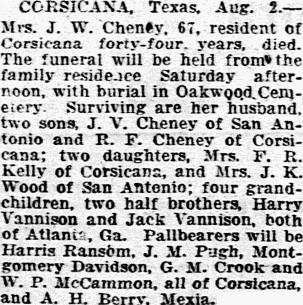 Corsicana; Mrs. Dick Ferrell, San Antonio; Bernie, W. A. and Ray