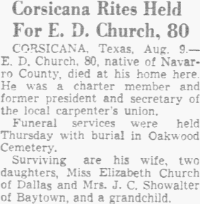 and later resided in the Emhouse and Mabank communities prior to
